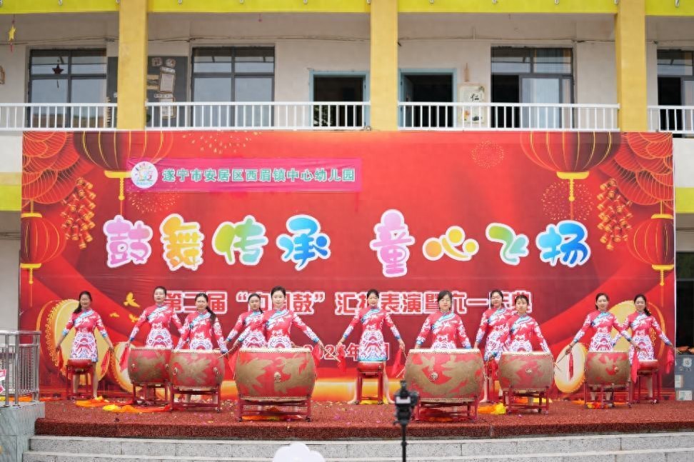 “六一”国际儿童节,是孩子们最期待的欢乐时刻。为了让孩子们度过一个难忘且富有意义的节日,同时展示幼儿园“中国鼓”特色课程的教学成果,遂宁市安居区西眉幼儿园于5月30日精心举办了“中国鼓”汇报表演暨六一庆典活动。活动现场热闹非凡,孩子们用激昂的鼓点、纯真的笑容,为家长和老师带来了一场视听盛宴。
