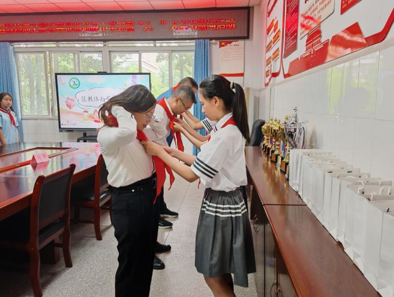 上午10:00,领导们到南溪区仙源小学校灵慧楼二楼会议室。该校少先队员代表整齐列队,怀着崇敬之情,为到场领导敬献红领巾,传递最纯真的敬意。随后,赵敏局长、陈明玲委员代表慰问组向该校10名学生代表赠送了精心准备的慰问品,并亲切地与孩子们交谈。赵局长鼓励孩子们勤奋学习、快乐成长,努力成为德智体美劳全面发展的新时代好少年。孩子们手捧礼物,脸上绽放出灿烂的笑容,现场洋溢着温馨热烈的氛围。