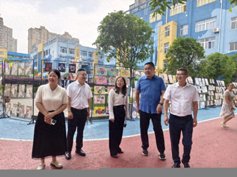 在杨召云的引领下,领导们率先参观了南溪区仙源小学校“五育并举”主题作品展。绘画展区,一幅幅充满童趣与想象力的绘画作品,生动展现出孩子们对生活的热爱;豆文化展区,以本地特色豆类为原材料创作的手工艺品独具匠心,巧妙地将劳动教育与地方文化相结合;浮雕文化墙前,杨召云围绕“书香校园”建设理念,深入介绍学校在传统文化传承与创新方面的探索。领导们不时停下脚步,仔细欣赏,对孩子们的奇思妙想与学校丰硕的教育成果给予高度赞扬。