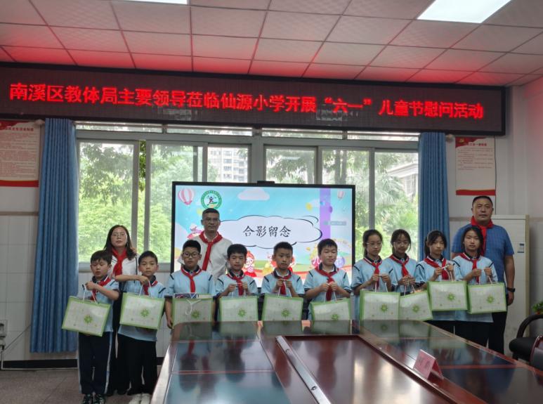 在“六一”国际儿童节即将到来之际,2025年5月30日,宜宾市南溪区教育和体育局及仙源街道相关领导到南溪区仙源小学校,开展了“六一”儿童节慰问活动,为孩子们送去温暖关怀与节日祝福,并参观学校“五育并举”教育成果展。
