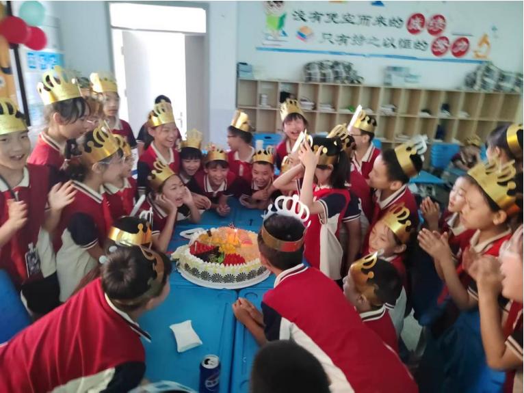 最令人期待的环节当属集体生日会。漂亮的生日蛋糕出现在教室,烛光摇曳,映照着孩子们纯真的脸庞。在温暖的生日歌中,同学们双手合十,闭上眼睛,许下属于自己的十岁心愿。随后,在老师和同学们的见证下,孩子们一同吹灭蜡烛,分享甜蜜的蛋糕,此刻,幸福与快乐在教室里流淌。
