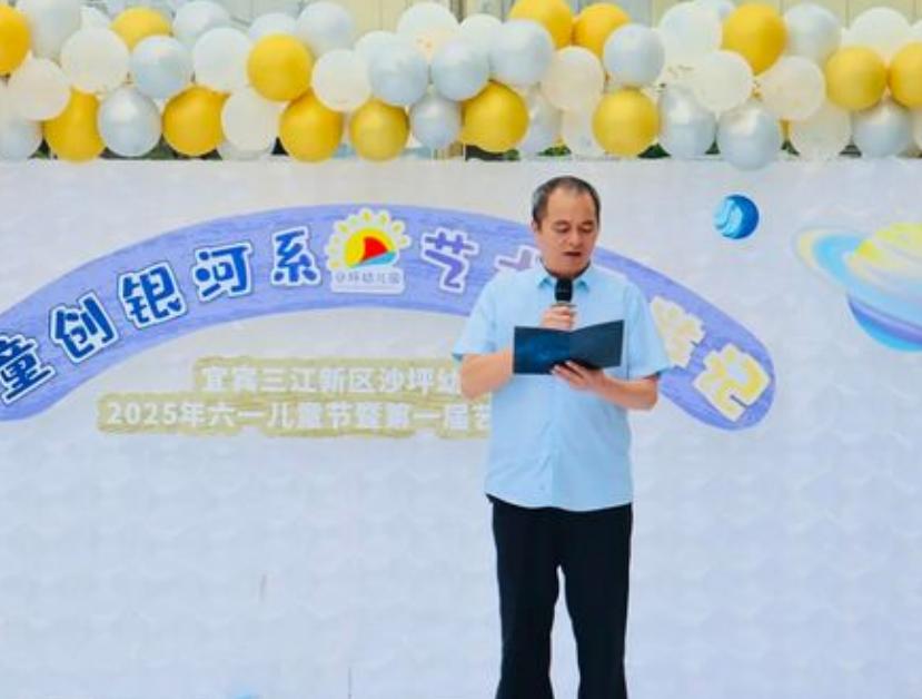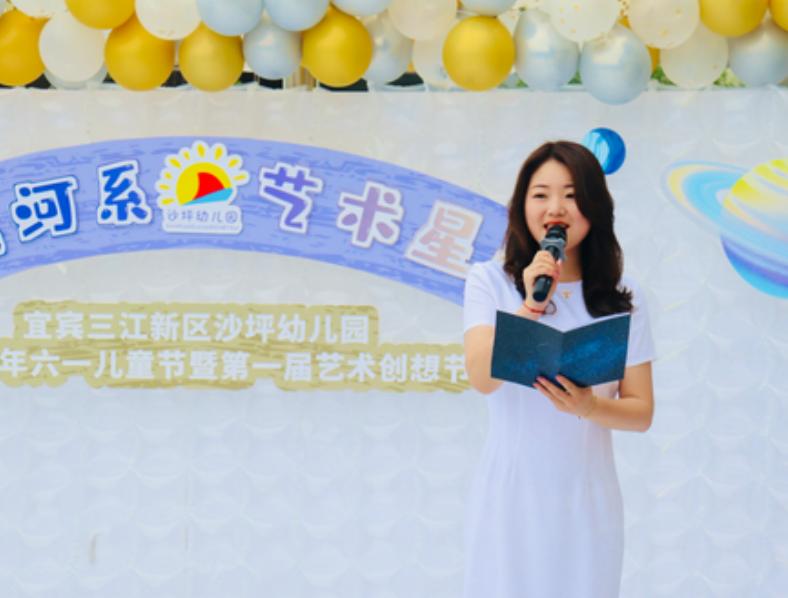 三江新区沙坪幼儿园园长王思琴对各位领导的到来表示感谢,向孩子们致以节日的祝福,向家长与教职工表达谢意,愿大家把今天的默契延续到教育过程中,把今天的欢笑延续到成长历程中。