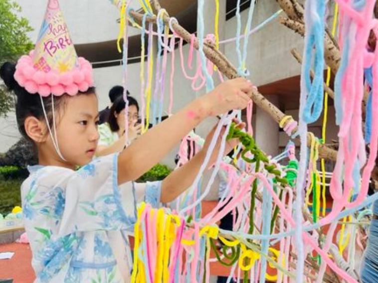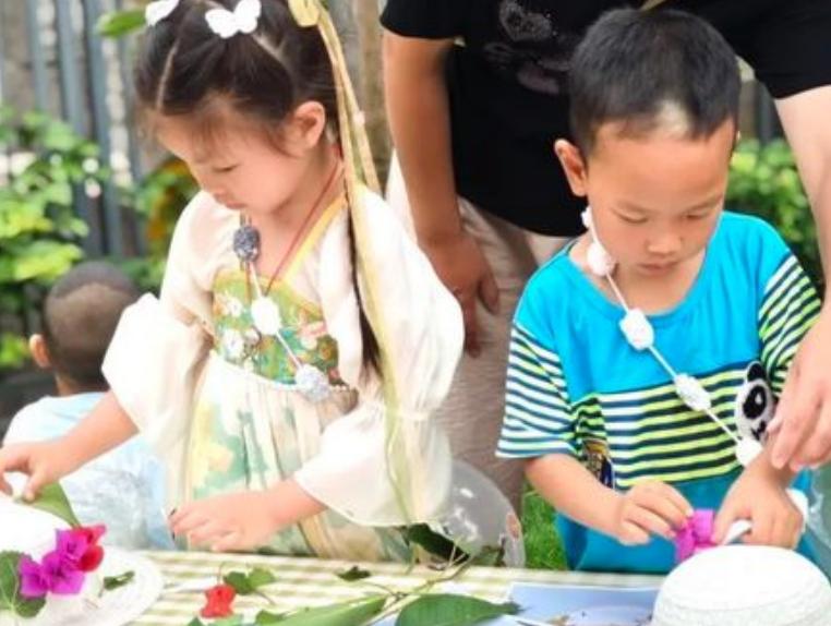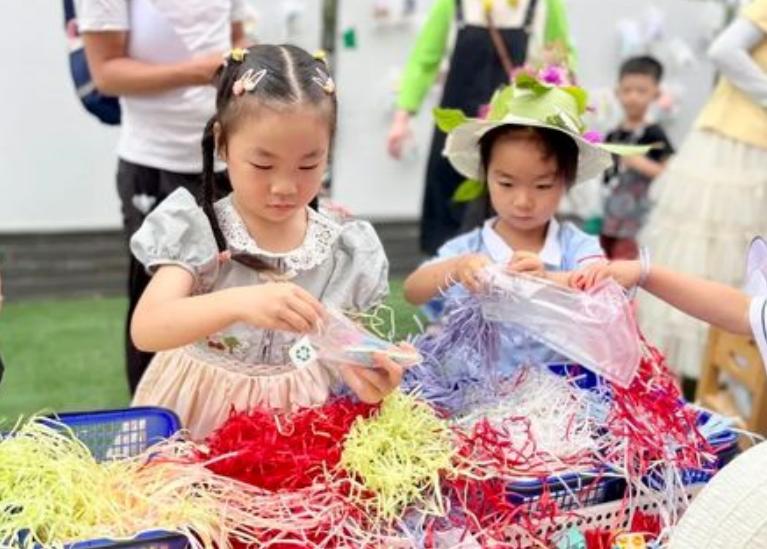 三江新区沙坪幼儿园孩子随着音乐节奏,进行花田创作,还能用串珠装饰花瓶,在艺术与欢乐交织中留下专属亲子回忆。