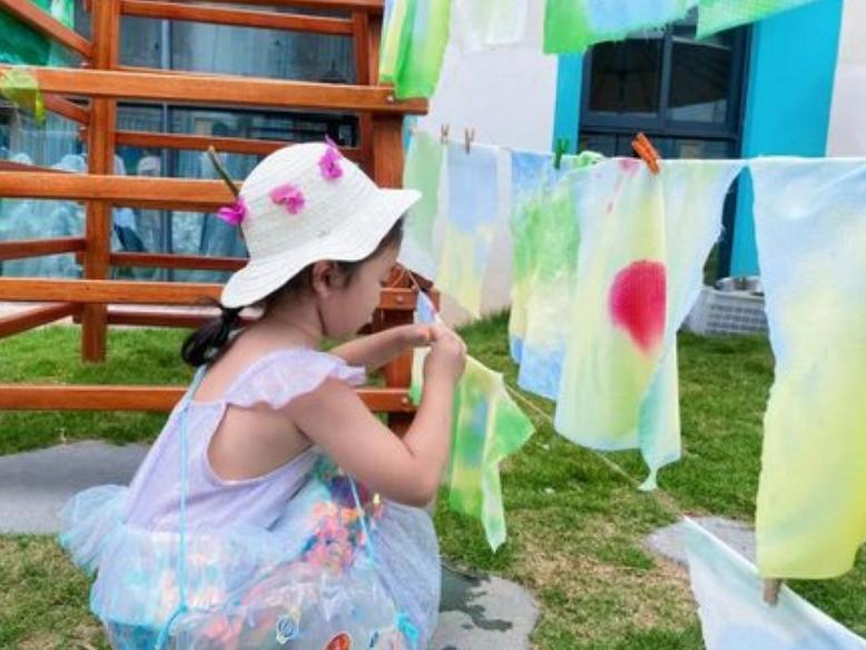 “踏秘境之山”,仿若走进梦幻画卷,三江新区沙坪幼儿园小朋友手持颜料喷壶,于纸巾上喷洒色彩,让颜料在纸间自由流淌,绘出灵动之美。