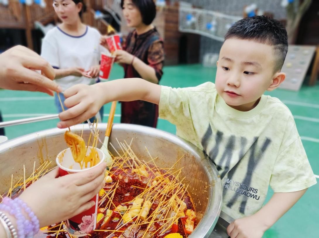 活动以“独立”与“成长”为核心,分为“星光夜市”“独立洗漱”“帐篷夜宿”三大环节。活动伊始,幼儿园党支部书记、园长刘建容等领导为活动剪彩,接着,在礼花绽放中,“星光铺”正式开市。孩子们与家长开始逛吃、逛喝与体验,现场洋溢着热闹的童声笑语。