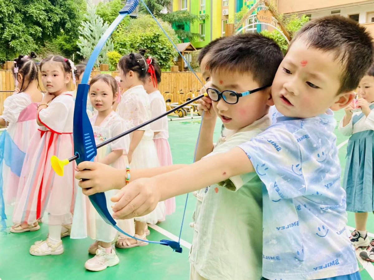 端午游园会里,孩子们热情高涨。扇动扇子“划”龙舟、瞄准壶口投艾草、拿起弓箭“射五毒”,在趣味游戏中感受端午习俗,锻炼动手能力与反应力。完成游戏的孩子还能兑换小奖品,收获满满成就感。