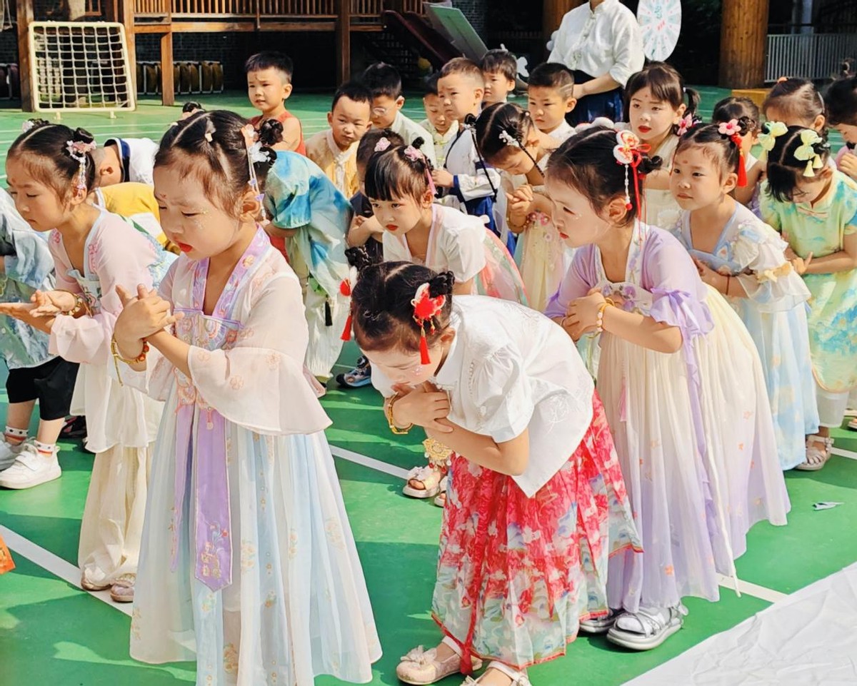 别开生面的汉服礼仪学习活动,带领幼儿穿越千年。在老师示范下,孩子们学习魏晋颔首礼、秦汉素拜礼等不同朝代传统礼仪,举手投足尽显优雅。汉服展示环节中,孩子们身着精美汉服,步履轻盈,生动诠释华夏衣冠之美。