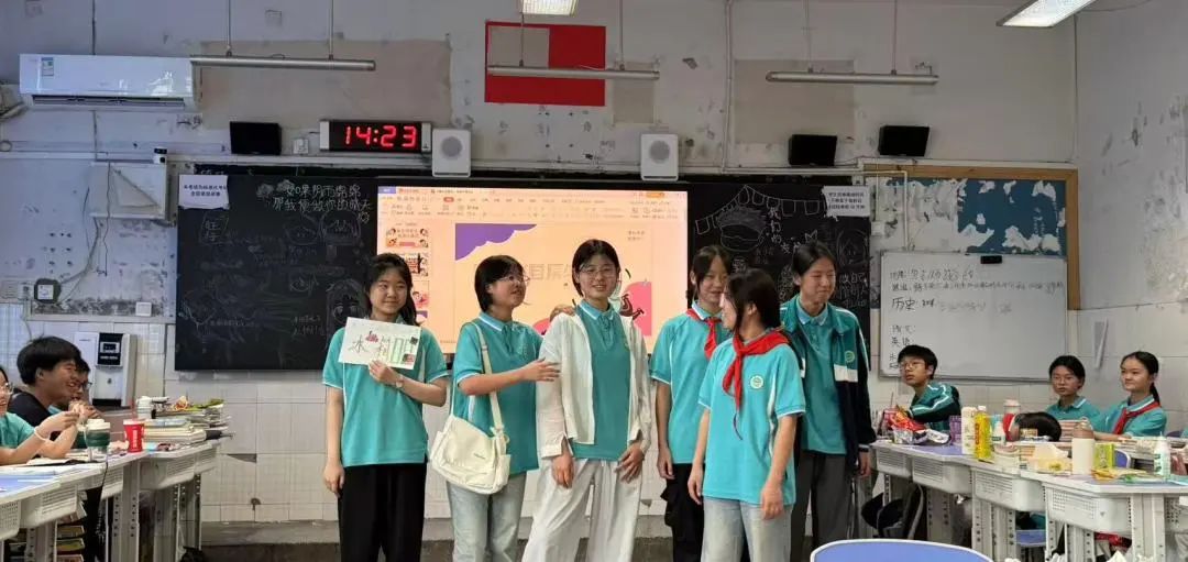 “时光走廊”照片墙在教室后方的黑板报上贴满了学生们的童年照片,大家围在一起,指着照片调侃彼此的“黑历史”,笑声不断。“将照片放在教室,让青春与理想共同生长。”