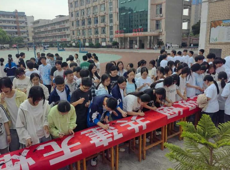活动第二项“无烟校园,我们共同承诺”横幅签字环节将活动推向高潮。南溪区第四中学校各班学生代表有序走向横幅,拿起记号笔郑重签下自己的名字,每一个签名都凝聚着全体师生对健康校园的共同向往。