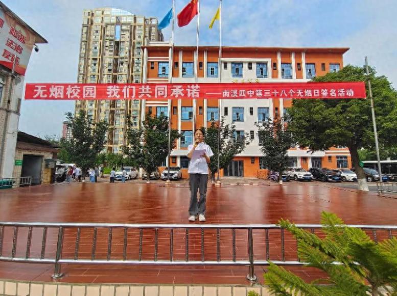 活动伊始,南溪区第四中学校学生代表手持倡议书向全体师生发出呼吁,列举了吸烟行为对校园环境的负面影响,更提出了具体的行动倡议,如主动劝阻吸烟行为、积极宣传控烟知识等。