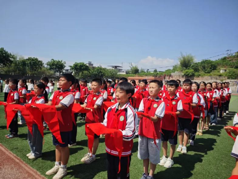 火红的队旗高高飘扬,鲜艳的红领巾闪耀光芒!在《中共中央关于全面加强新时代少先队工作的意见》的指引下,2025年5月29日上午,高县翰笙小学校举行了“红领巾心向党,争做时代好队友”新队员入队仪式。84名学生光荣地加入中国少年先锋队,为少先队组织增添了新的活力。