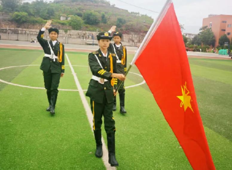 伴随着激昂的出旗曲,旗手与护旗手神情庄重,迈着整齐有力的步伐入场。高县翰笙小学校全体师生目光聚焦着火红的队旗,满怀期待地迎接这一神圣时刻。