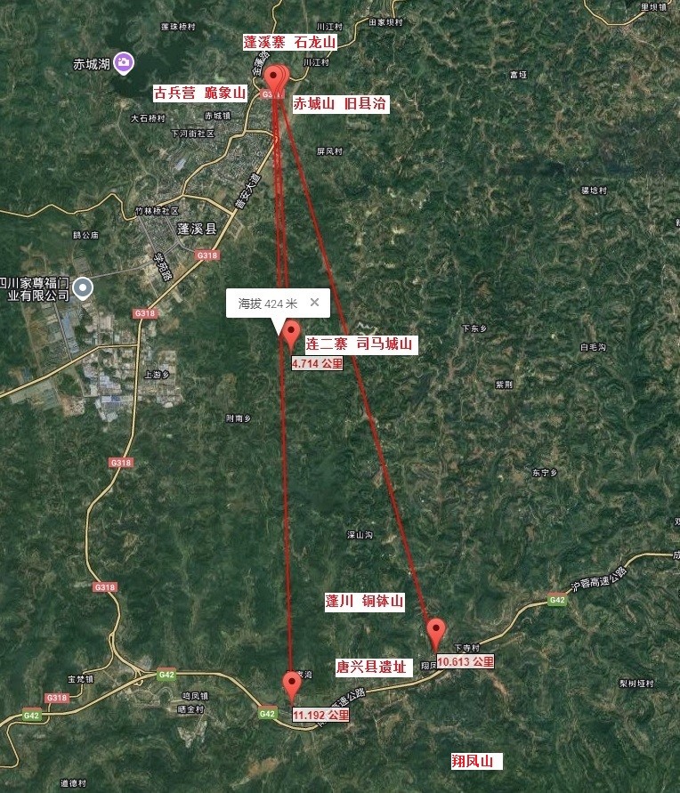 卫星地图显示唐兴县遗址和司马城山位置与旧史记载吻合
