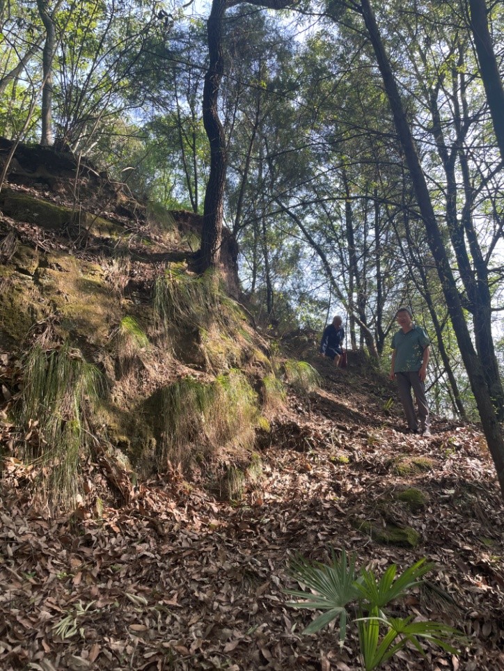 随后,考察组一行又再次前往鸣凤镇天门村考察,确定了与天门寺、连二寨同为一片的山体前,还有一不知名山寨,因无路可上,无法查勘,不知其上是否尚有遗迹。