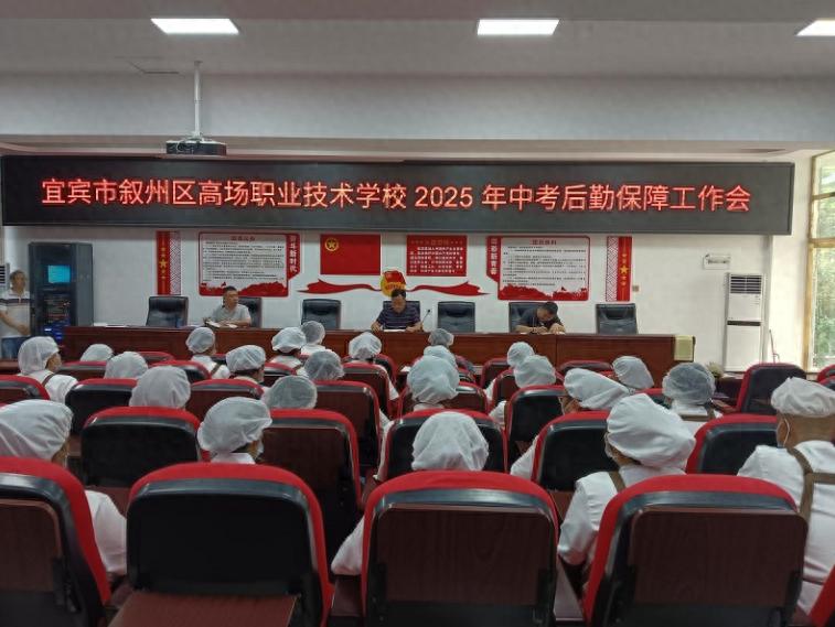 为强化校园后勤管理、守护师生饮食安全,全力保障2025年中考、高考平稳进行,6月4日上午,宜宾市叙州区高场职业技术学校总务处在学术报告厅召开了2025年中考后勤保障工作会,学校校长樊平、全体食堂从业人员参会。