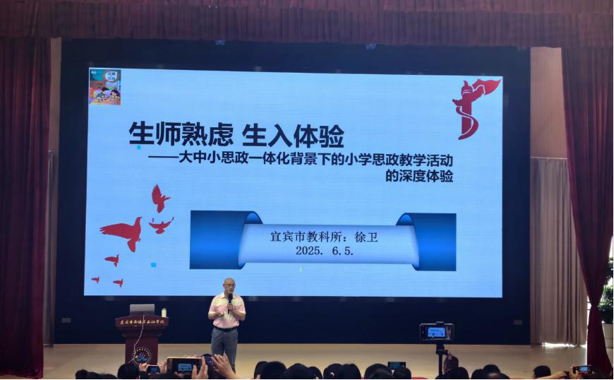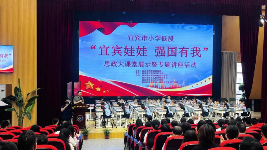 2025年6月5日,宜宾市小学低段“宜宾娃娃 强国有我”网络思政大课堂展示暨专题讲座活动在南溪区长江学校举行。本次活动由宜宾市教育和体育局主办,宜宾市教育科学研究所承办,宜宾市教育信息化中心、宜宾市南溪区教育和体育局、宜宾市南溪区教师培训中心、宜宾市南溪区长江学校、宜宾市南溪区陈小燕班主任名师工作室协办。来自全市各区县的三百余名教育工作者及市、区教体局相关领导齐聚一堂,共同探讨思政教育的创新与实践。