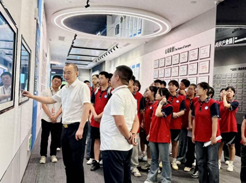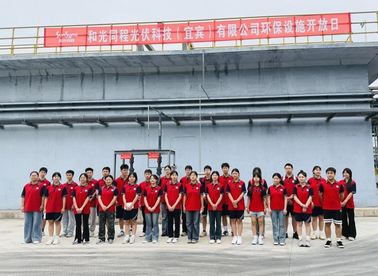 参观完生产车间后,高新区和光同程光伏科技公司工作人员重点介绍了公司在环保方面的具体举措。在厂区屋顶,规模庞大的光伏电站格外引人注目。据介绍,这些光伏板年发电量超过千万千瓦时,不仅能满足部分生产用电需求,还可向电网输送绿色电力。在污水处理站,叙州区高场职业技术学校师生们了解到,生产过程中的废水经过深度处理后可以循环利用,实现了近零排放。此外,公司还通过绿色供应链管理,优先采购低碳材料,并推动包装材料回收再利用。“原来一家工厂可以在这么多环节实现环保!”该校2023计算机(1)班黄琴同学感慨道。