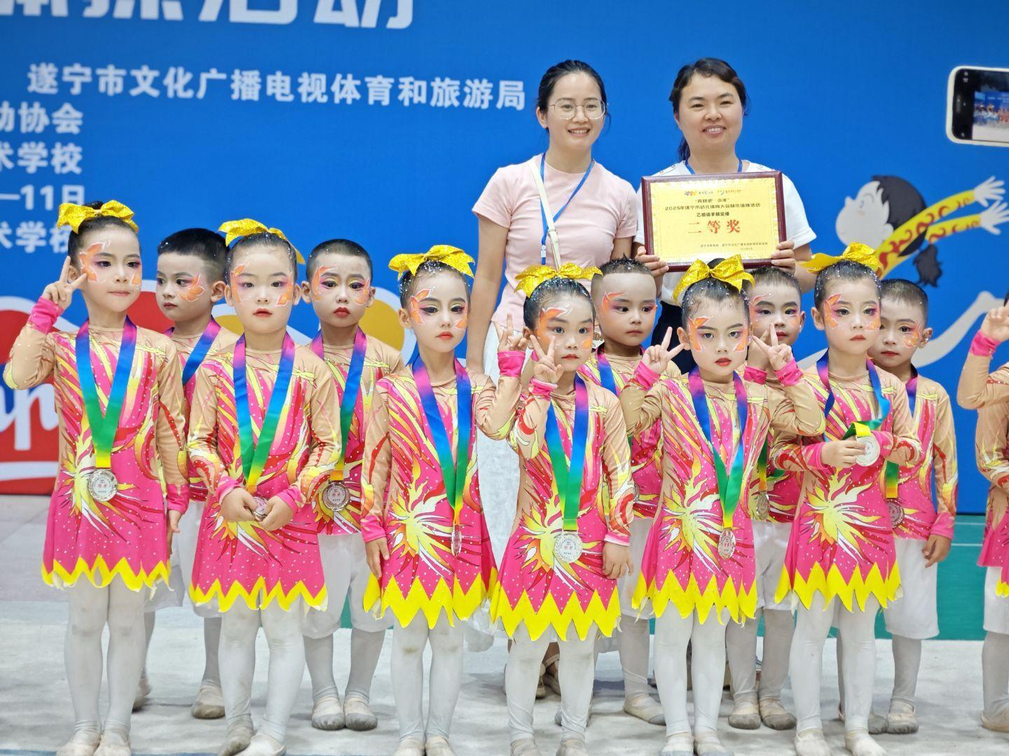 为深入贯彻体育强国战略,帮助幼儿在体育锻炼中享受乐趣、增强体质、健全人格、锤炼意志,6月11日,遂宁市安居区三家镇中心幼儿园参加了“奔跑吧·少年”2025年遂宁市幼儿体育大会快乐体操活动,并在比赛中喜获佳绩。