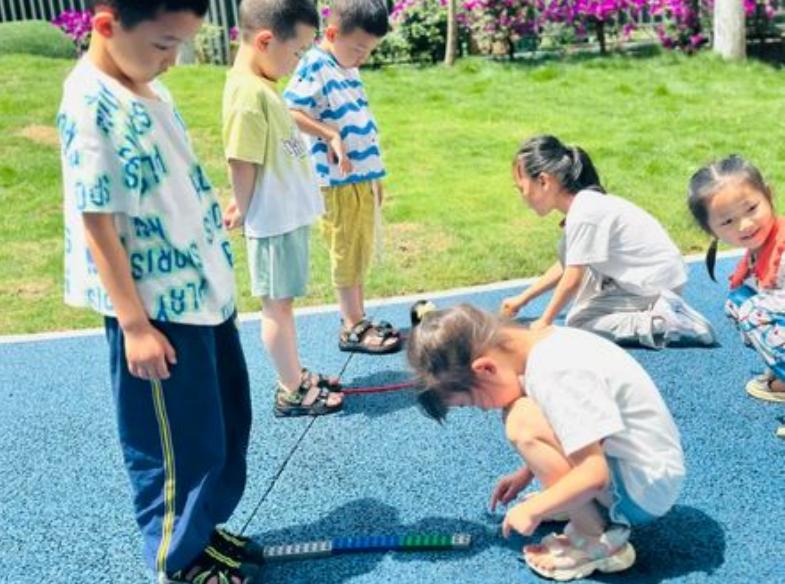孩子们在玩游戏的过程中发现每个物品的影子长短都是不一样的!影子有多长呢?孩子们纷纷想起了办法,用玩具进行测量。