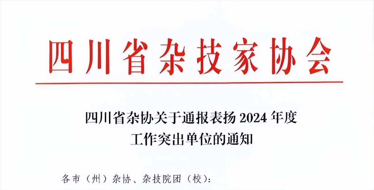 近日,四川省曲协八届三次理事会,四川省杂协八届三次理事(扩大)会在成都召开。会上,遂宁市曲艺家协会,遂宁市杂技家协会,射洪市杂技家协会,遂宁市杂技团,遂宁市春苗杂技艺术团,因2024年度工作突出获表扬。