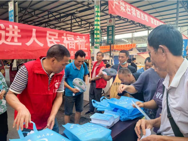 活动中,工作人员和志愿者向过往群众宣传河长制相关知识,简单讲解南溪区黄沙镇河长制工作开展情况,并发放宣传资料和纪念品,引导群众从身边小事做起,摒弃在河道周边乱倒垃圾等不良行为习惯,积极参与到河道环境治理中来。
