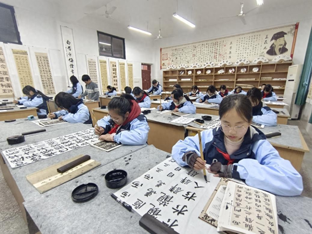 遂宁安居一中毛笔书法社团以丰富多元的活动,为校园文化建设注入了浓郁的墨韵书香,成为校园里一道亮丽的文化风景线。
