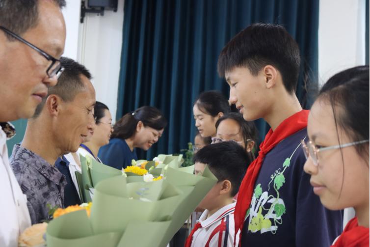 鲜花礼赞环节,学生代表向任教老师献上向日葵花束,寓意“师恩如阳,伴我成长”。