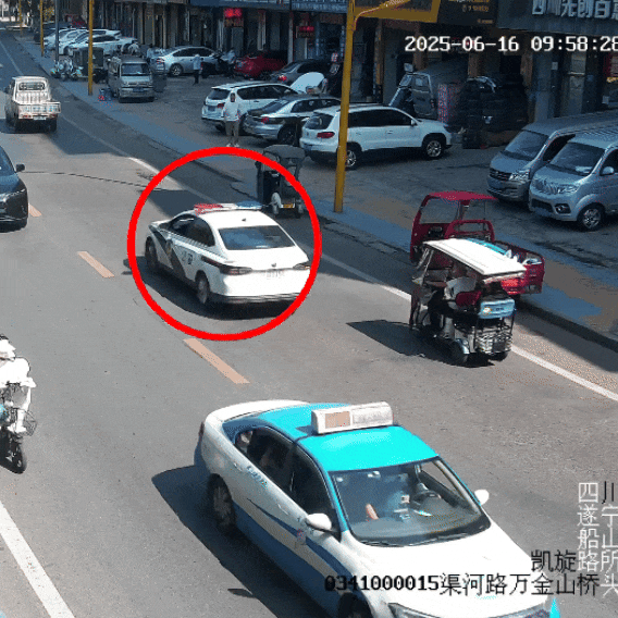 随后,吕超示意白色轿车跟随与同事黎学驾驶警车,迅速向市中心医院驶去,当时正值早高峰,沿途车辆较多,护送难度较大,为确保伤者尽快送医,吕超一边拉响警笛、亮起警灯,用喊话器指挥其他车辆避让,一边联系交警申请“绿色通道” 开启紧急护送模式。