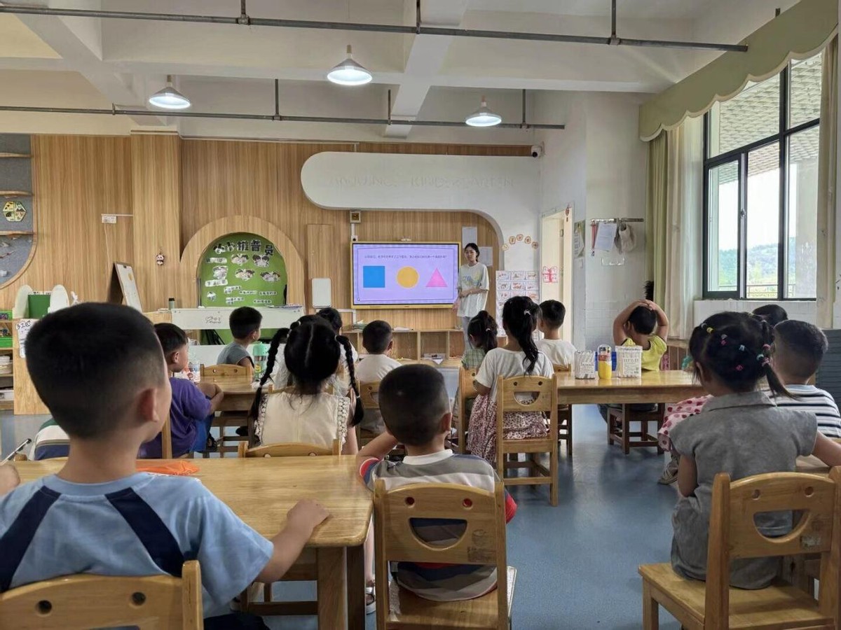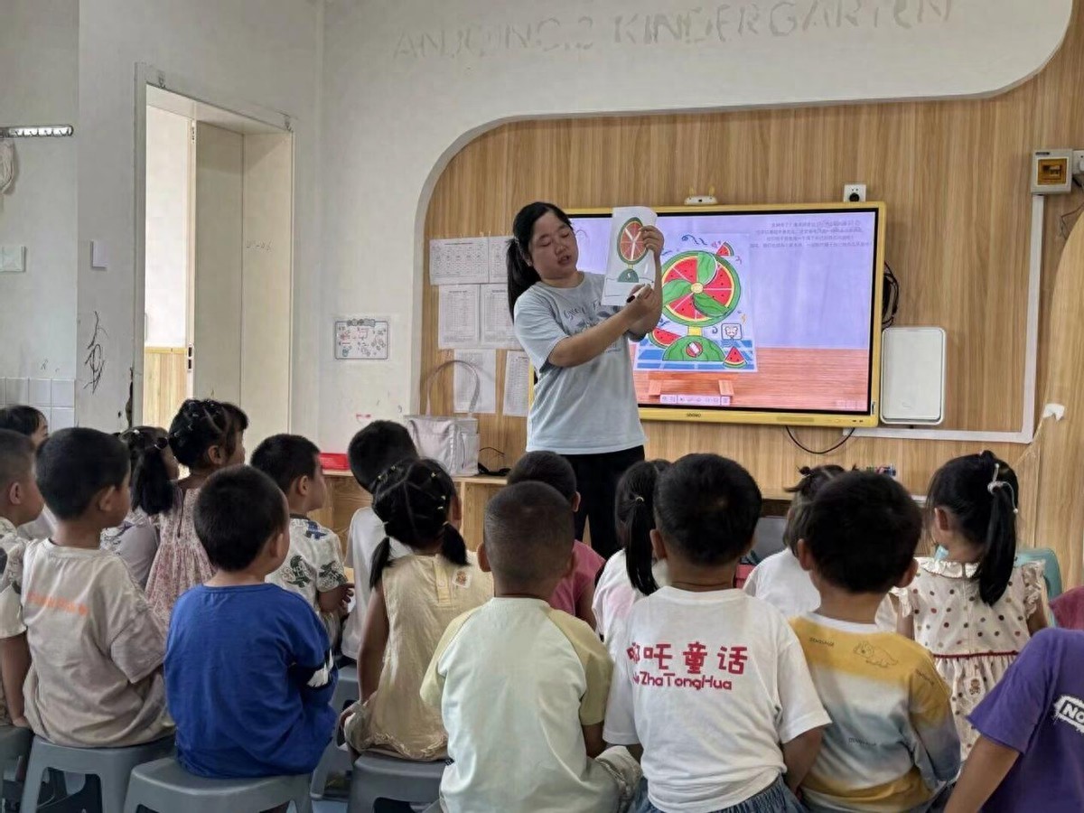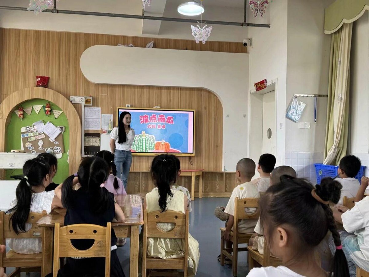 小班袁蕾老师的艺术活动《西瓜风扇》以夏日为主题,引导幼儿用撕贴、涂画等趣味方式制作“西瓜扇”;大班唐雨晴老师的科学活动《波点南瓜》巧妙融合草间弥生艺术与科学探究,幼儿化身“小小艺术家”,通过观察、测量、统计南瓜身上的波点,感知规律与数量的奥秘;中班薛宇扬老师的数学活动《会变的圆》以魔法情境贯穿始终,引导幼儿通过组合、拆分,动态感知图形变换,理解整体与部分的关系,在操作游戏中发展空间逻辑能力。