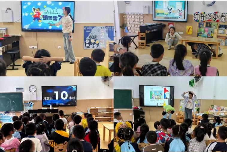 制定地震避险演练方案。当模拟地震发生时,幼儿迅速躲在桌子、椅子下面进行避险。地震结束后,教师带领幼儿按照疏散路线有序疏散到空旷的地方。演练结束后,教师总结经验教训,让幼儿进一步掌握地震避险知识。
