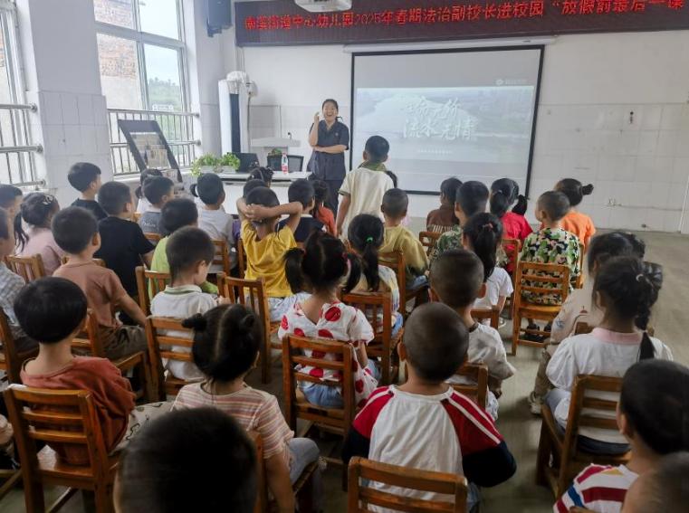暑假将至,为进一步增强幼儿的安全意识和法治观念,提高幼儿的自我保护能力,2025年6月25日,宜宾市南溪区南溪街道中心幼儿园特邀请法治副校长到园开展了“放假前最后一课”的法治安全教育活动。本次活动覆盖了幼儿园全体班级,为幼儿的假期安全筑牢了坚实的防线。