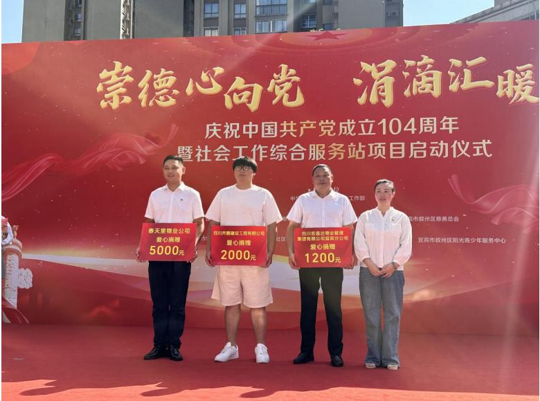 为赓续红色血脉、汇聚奋进动能,庆祝中国共产党成立104周年,推动社区社会工作与公益慈善事业高质量发展,2025年6月26日,宜宾市叙州区柏溪街道崇德社区“崇德心向党·涓滴汇暖流”庆祝建党104周年主题活动暨社会工作综合服务站项目启动仪式,在社区综合服务中心举行。