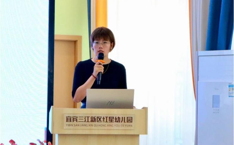 三江新区红星幼儿园邀请了童真教育课程中心自主游戏资深培训师蒋頔老师,她观察了该园幼儿在户外场地中的活动现状以及教师的支持行为。中午,她倾听了全园教师的游戏案例汇报,对观察的情况和教师们分享的内容进行了专业点评。她强调教师在撰写游戏案例时应通过生动的细节还原幼儿的真实互动,增强故事性和画面感,让分析更具感染力。同时,要深入捕捉幼儿行为背后的学习动机与发展价值,从而提升案例的反思深度和教育意义。