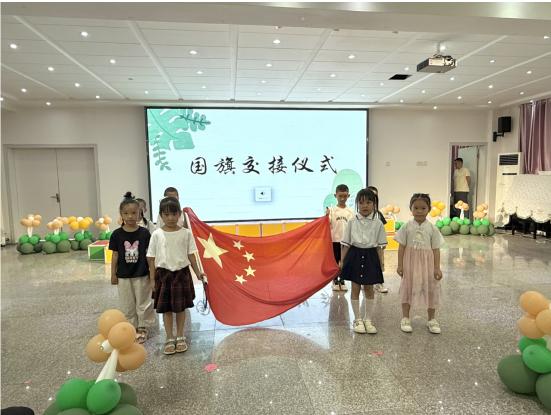 幼儿带来精彩表演,稚嫩的歌声与舞姿中满是对幼儿园的不舍;中小班幼儿的童声祝福让现场充满暖意;最具仪式感的国旗交接环节中,大班与中班幼儿代表庄重交接国旗,责任与传承的种子在孩子们心中悄然种下;随后,全体大班幼儿齐唱毕业歌,颁发毕业证书,亲切合影时的叮嘱与笑容,成为家长镜头里的珍贵画面。