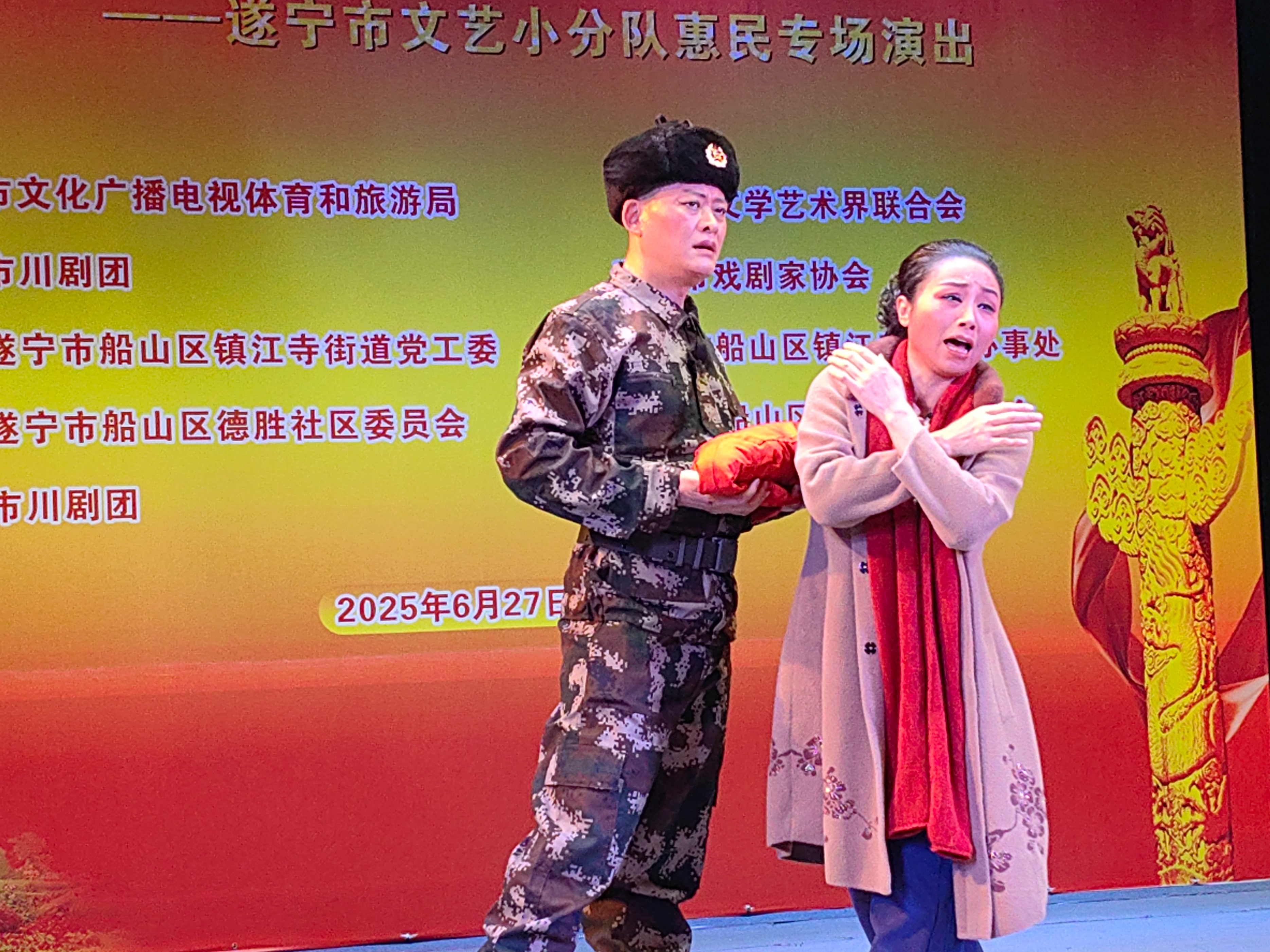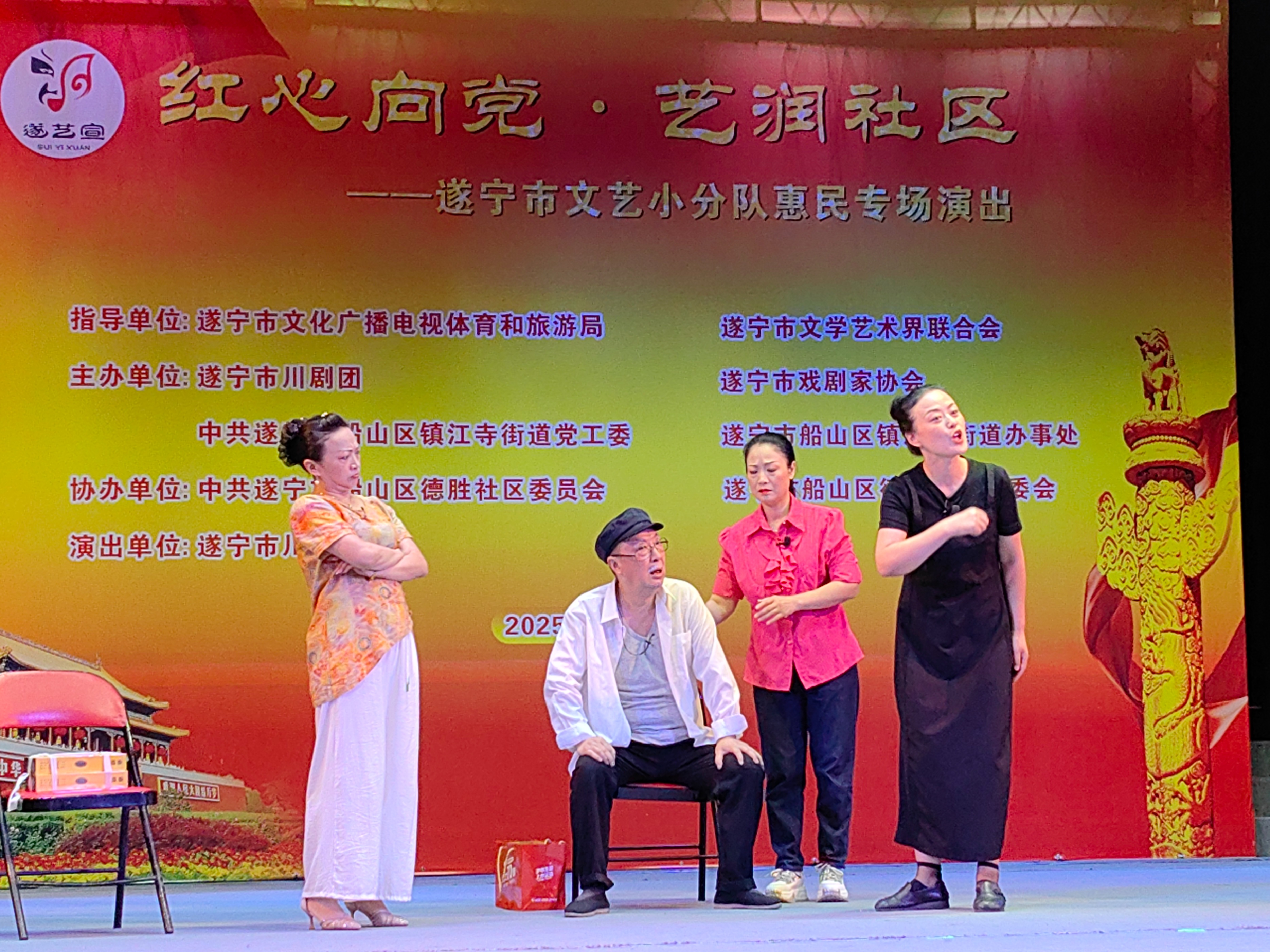 据悉,该活动由遂宁市文化广播电视体育和旅游局、遂宁市文学艺术界联合会指导,遂宁市川剧团、遂宁市戏剧家协会、中共遂宁市船山区镇江寺街道党工委、遂宁市船山区镇江寺街道办事处主办,中共遂宁市船山区德胜社区委员会、遂宁市船山区德胜社区居委会协办。(文图/刘德君)