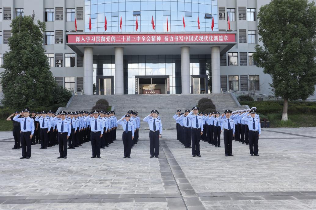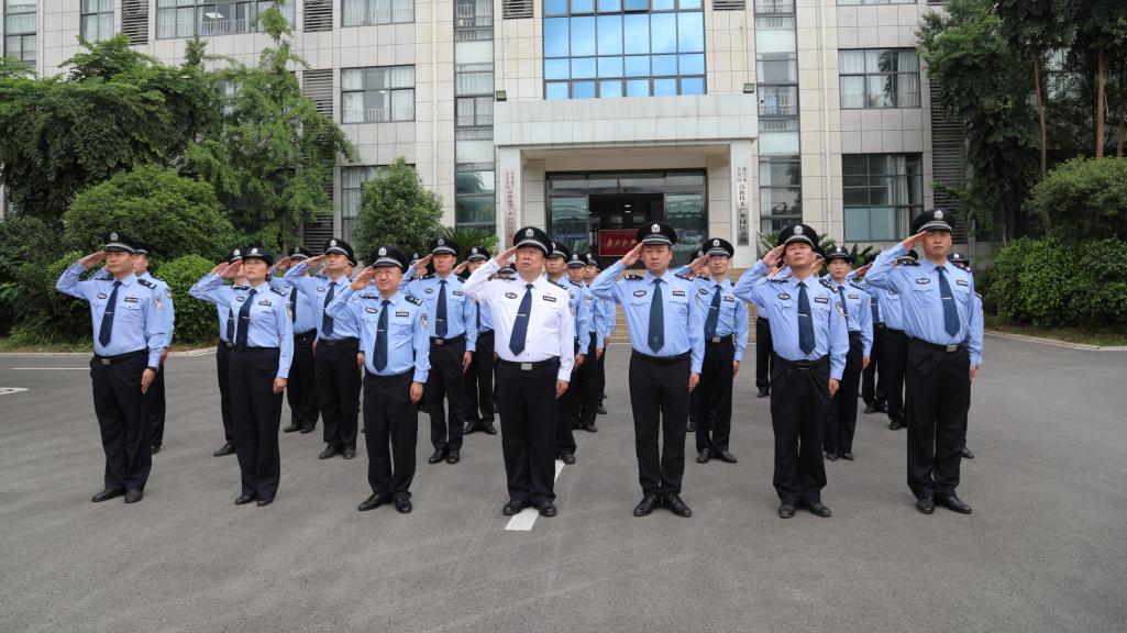 市局党委副书记、常务副局长蒋亚峰主持仪式,市局在家局领导、市局机关双正职领导和民警代表共80余人参加仪式。