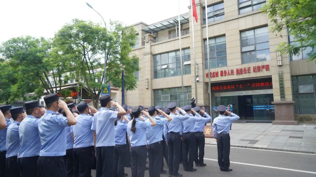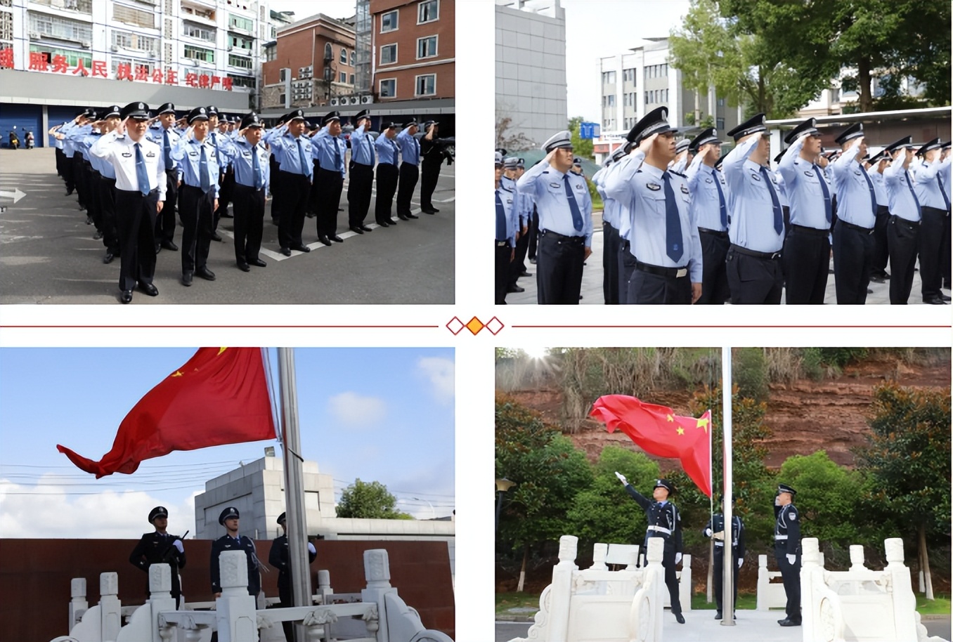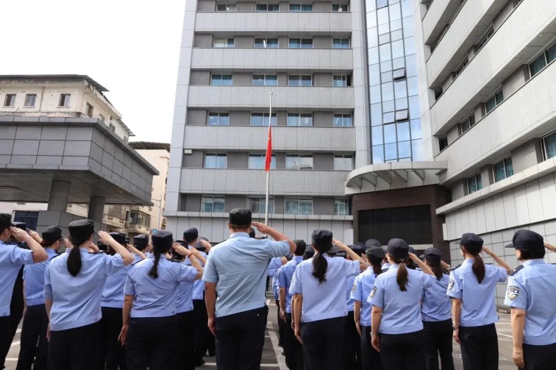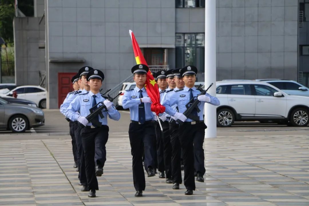 升国旗仪式后,冯艳伟领誓重温《入党誓词》。面对鲜红的党旗,参加仪式人员高举右拳,庄严宣誓:“我志愿加入中国共产党……”铿锵有力的誓言,表达了公安民警对党的无限忠诚和为人民服务的坚定信念。