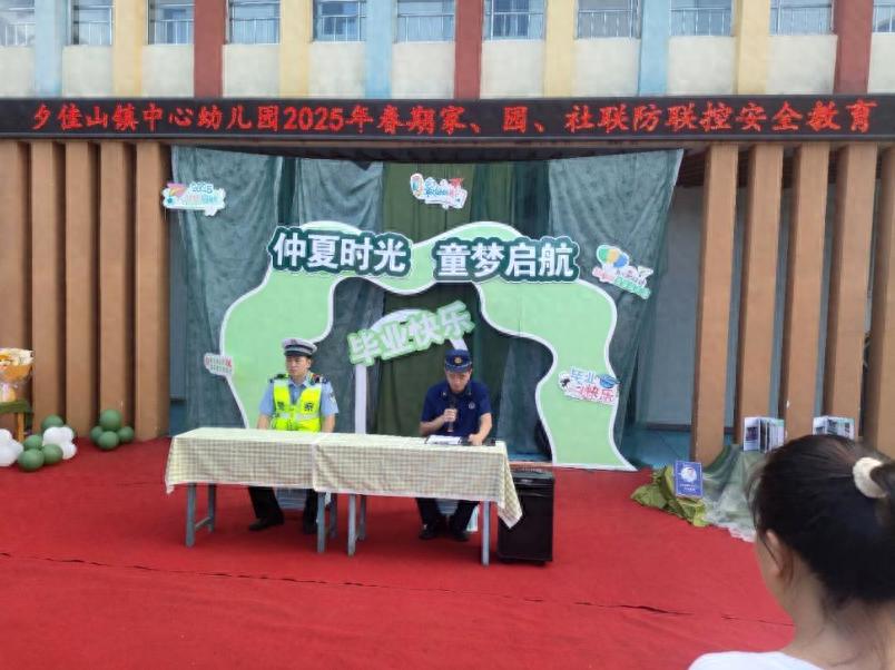 为强化暑期安全教育,提升师生家长安全防范能力,2025年7月2日上午,江安县夕佳山镇中心幼儿园携手夕佳山派出所、交警队、消防站开展了“暑期安全集中宣讲活动”,通过“警园家社”协同联动,为全园师生及家长送上安全教育“大礼包”。