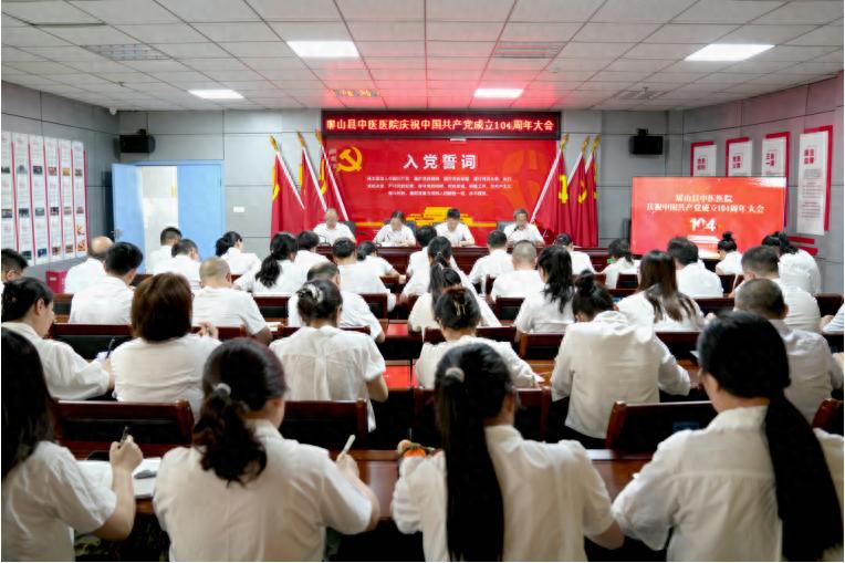 在庄严的氛围中,屏山县中医医院全体党员起立,高举右手,重温入党誓词。一句句铿锵有力的誓言,表达了党员们对党的无限忠诚和为党的事业奋斗终身的坚定决心。