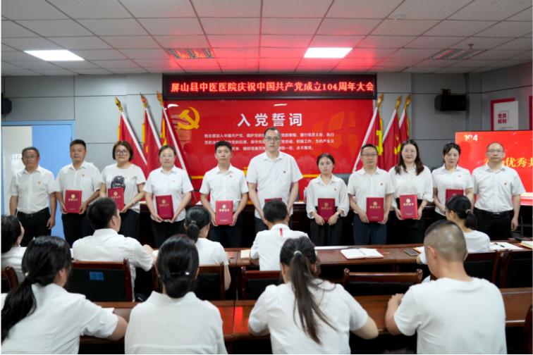 2025年7月1日下午,屏山县中医医院在医院B区党员活动室召开了庆祝中国共产党成立104周年大会。县卫生健康局党组成员、中医药发展服务中心主任王继林及医院全体党员、入党积极分子参加会议。大会由医院党总支副书记黄玉生主持。