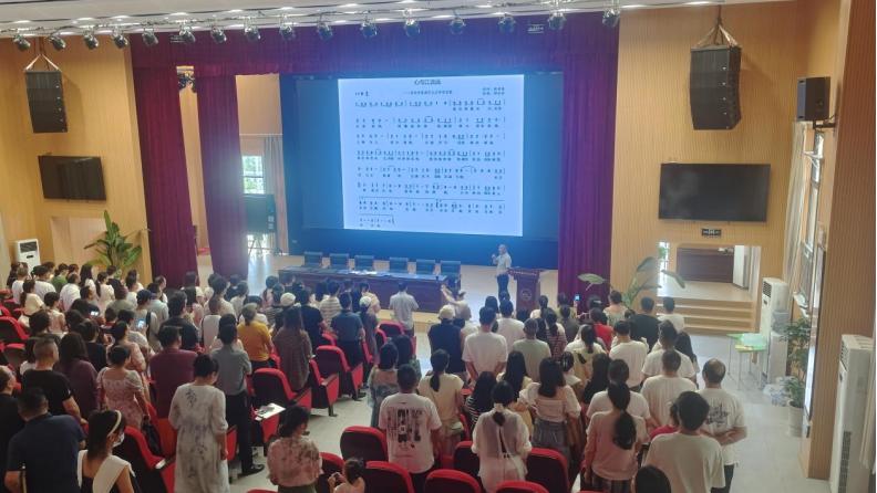 会议还针对现存问题提出改进措施,并就假期安全、教师成长等作出温馨提示。会议尾声,南溪区长江学校全体教师齐声唱响校歌《心与江流远》,激昂的旋律在会场回荡,深情的歌词传递着教育者的初心与使命。歌声中,既有对三年奋斗历程的深情回望,也有对未来征程的坚定期许。这首承载着学校精神与文化底蕴的校歌,将全体长江人的心紧紧凝聚,为本次大会画上了充满温情与力量的句点。