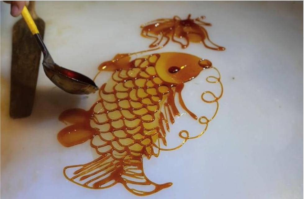 川中糖画是用糖浆画的糖食。根据地域的不同亦称“倒糖饼”“糖关刀”“糖灯影”等,是一种独具特色的民间艺术。