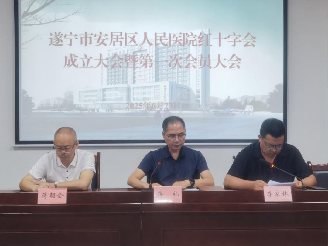 6月23日,遂宁市安居区人民医院在行政楼学术厅召开红十字会成立大会暨第一次会员大会。党委副书记、院长蒋礼、党委委员李家林出席会议,全体会员共28人参加会议。会议由党委委员李家林主持。