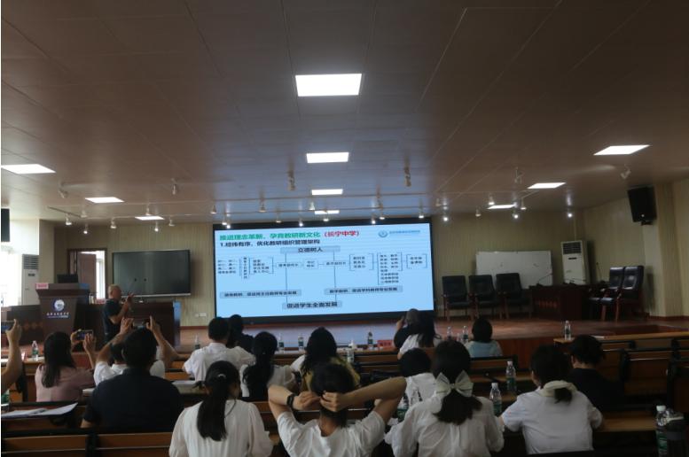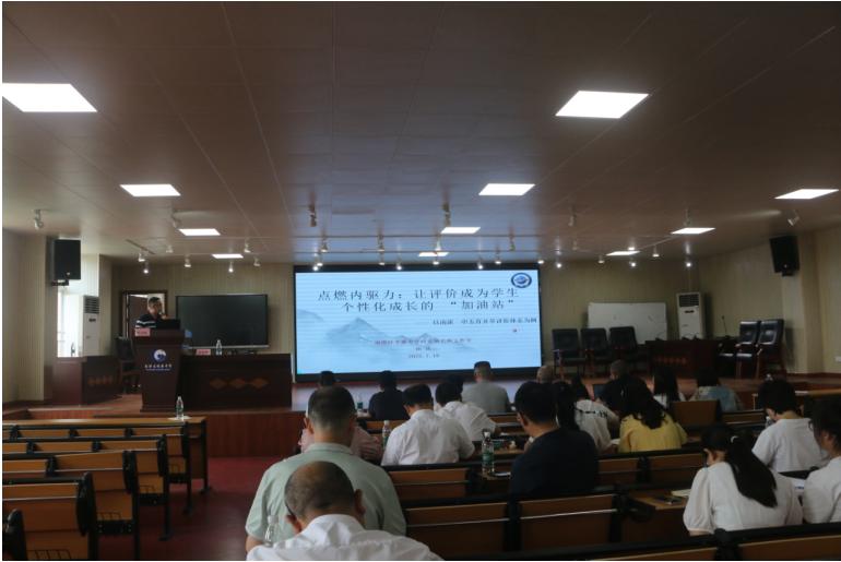 接着,宜宾市教育科学研究所副所长何夕忠带来专题讲座《新课程改革转型发展背景下教育质量观的转变》,深刻剖析了新时代背景下教育质量内涵的深刻变化,为与会者带来了关于“质量”的全新思考维度。宜宾市教育科学研究所所长陈明冲聚焦“加强教研组改革建设,提升课堂质量”,通过列举宜宾市中小学校的优秀教研改革案例,深入阐述了教研组在课堂提质中的关键作用,为学校优化教研组建设、提升课堂实效提供了清晰的思路和方向。