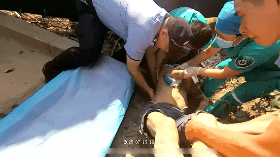由于老人处于昏迷状态且意识不清醒,民警考虑到随意搬动可能会对老人造成二次伤害,未敢轻举妄动。同时,当时天气炎热,太阳持续暴晒,为避免老人因高温出现中暑症状,民警迅速从附近树丛中摘来几片芭蕉叶,为老人遮挡阳光。