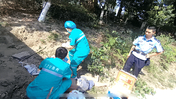 抵达现场后,民警发现老人躺在地上已陷入昏迷状态,脸上还带有血迹,情况较为危急。见状,民警第一时间拨打了 120急救电话。