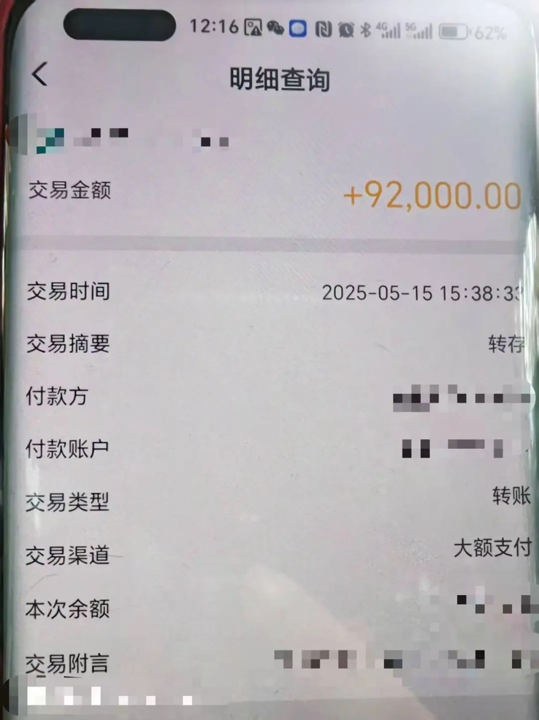 接警后,新桥派出所立即启动反诈紧急止付机制,争分夺秒对涉案银行卡进行冻结,并联合分局刑侦大队反诈中队民警连夜开展资金流向追踪,与时间赛跑,成功锁定多张关键账户。通过联系一名涉案银行卡主漆某进行工作后,其表示愿意退还非法所得,以解冻账户(该案其他线索已移送属地公安机关办理)。2025年5月15日,办案民警通过银行将追回的92000元被骗资金,如数发还至刘女士账户。