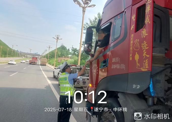 为进一步加强夏季道路交通安全管理,有效预防和遏制因货车违法造成的道路交通事故,7月以来,遂宁公安交警扎实开展货车交通违法行为整治行动,对货车超载、闯禁行、疲劳驾驶、酒驾醉驾等重点违法行为进行整治,全力维护辖区平安稳定的交通安全形势。