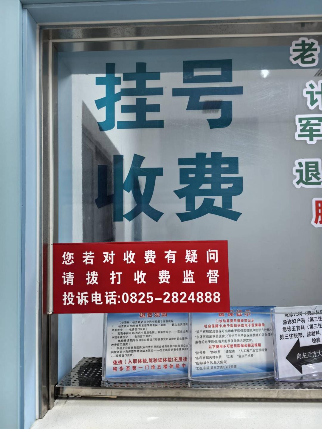 门诊收费窗口和导医台都贴了监督投诉电话:0825-2824888。下班时间也别担心,电话会转至行政值班电话,24 小时随时响应,你的监督就是我们进步的动力!