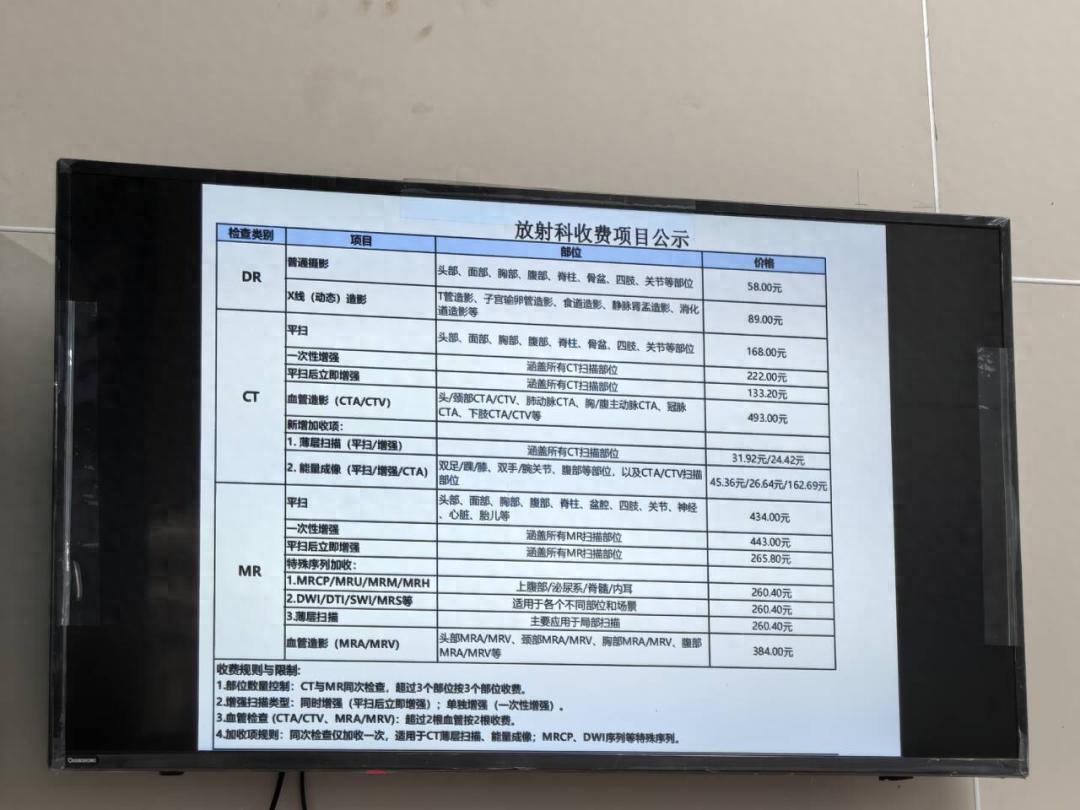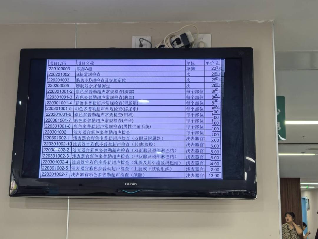 医院在门诊 LED 电子屏,还有门诊药房、检验科、超声科、放射科都增挂了电视机,清清楚楚公示着收费价格和目录,每一分钱花在哪儿,一目了然!